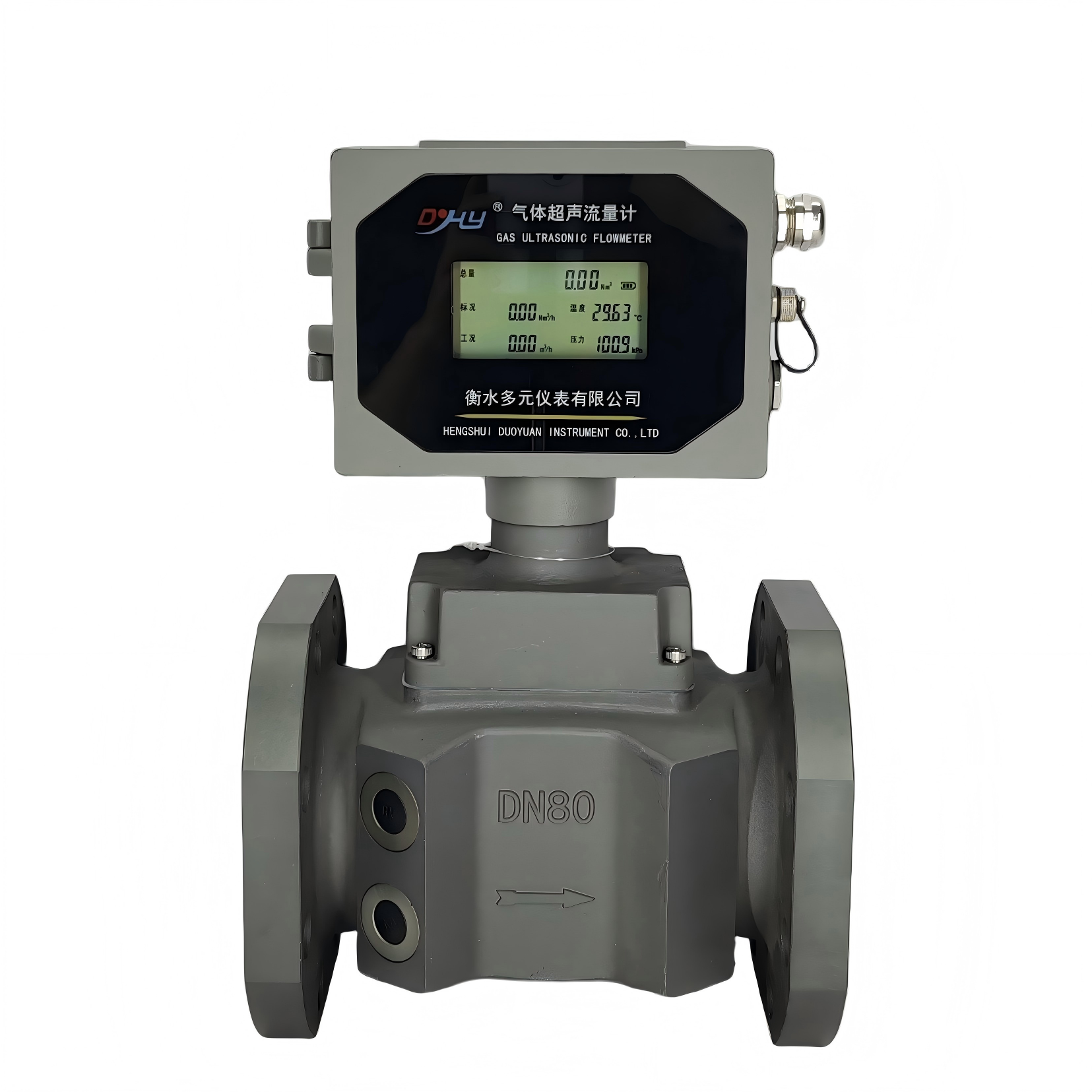 DYQC型氣體超聲流量計(jì)是基于傳播時間差法的互相關(guān)流量計(jì)算原理,利用超聲波檢測管道中氣體流速信息的非接觸式流量計(jì),由于其具有測量精度高、抗干擾能力強(qiáng)、壓力損失小以及測量范圍寬等優(yōu)點(diǎn),近年來在氣體流量檢測領(lǐng)域逐步得到廣泛的應(yīng)用。主要適用于城市燃?xì)夤芫W(wǎng)的計(jì)量、工業(yè)燃?xì)獾挠?jì)量、燃?xì)庹{(diào)壓站的計(jì)量、能源管理等計(jì)量,